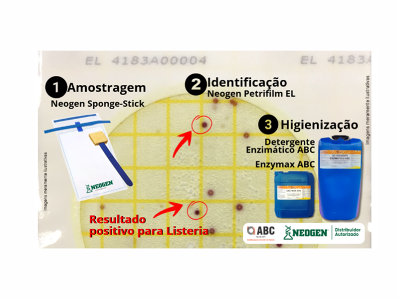 2)Neogen Petrifilm EL, para o monitoramento de Listeria ambiental, método certificado, com resultados rápidos e confiáveis e;