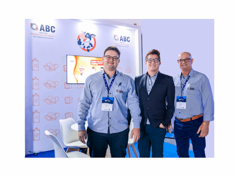 A Bahia ocupa a primeira posição no cenário leiteiro no Nordeste e é o sétimo maior produtor e processador de leite do Brasil. Em 2024, foram 1,3 bilhão de litros produzidos, movimentando R$ 2,5 bilhões em valor bruto de produção e gerando milhares de empregos em toda a cadeia, do campo à indústria. O evento foi promovido pelo Sindileite - Sindicato das Indústrias de Laticínios e Produtos Derivados do Leite da Bahia, com apoio do Governo da Bahia. Na foto os participantes da ABC no evento no estande da empresa, à esq.: Anderson Padilha, equipe de vendas, Luciano Chano, da equipe técnica, e José Carlos Lima da equipe de vendas.