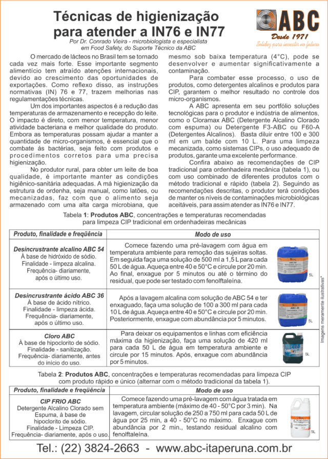 Artigo disponivel em: Art. "Téc. de Hig. para atender a IN76 e IN77"