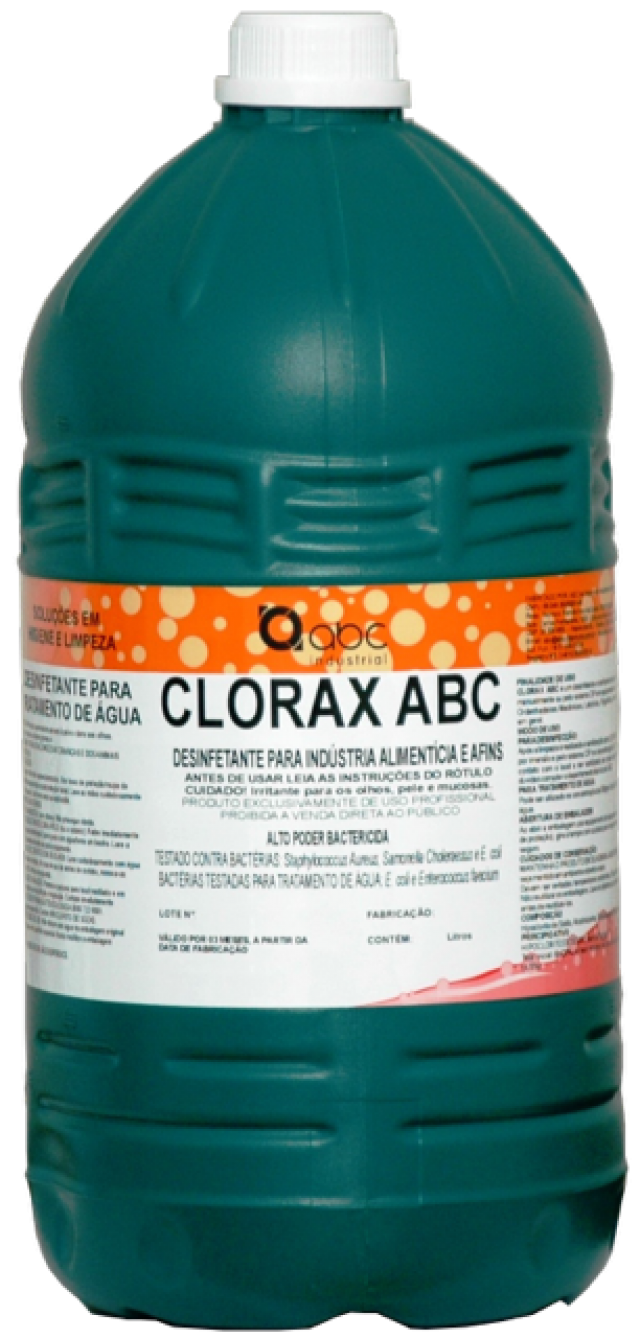 O CLORAX ABC também é um desinfetante para tratamento de água para consumo humano, sendo aprovado e registrado pela ANVISA/MS e testado frente as bactérias E. coli e Enterococcus faecium, proporcionando total segurança em sua utilização.