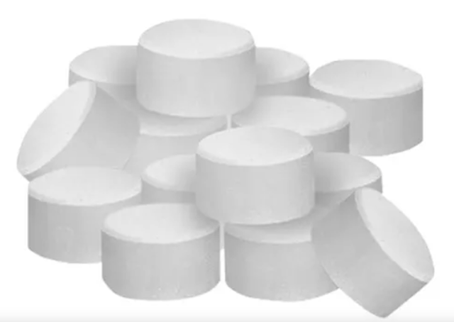 Trissane (tricloro 90%) – desinfetante para água de consumo humano. Modo de usar: 1 g para cada 1000 litros de água.  Embalagens de 1 Kg, com pastilhas de 20 g.